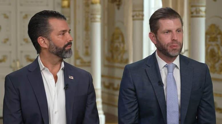 Donald Trump Jr. , left, and Eric Trump speak on CNBC’s “Squawk on the Street,” Feb. 18, 2026.